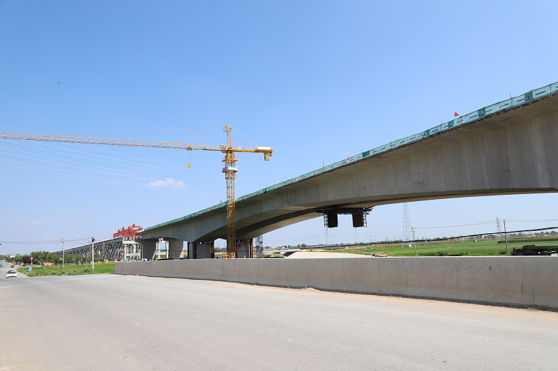 河南省公路工程局承建的焦平高速焦荥段三标段位于温县境内,路线长4.008公里。此次合龙段位于西霞院干渠桥主桥,全长330米,为预应力混凝土变截面连续梁桥。